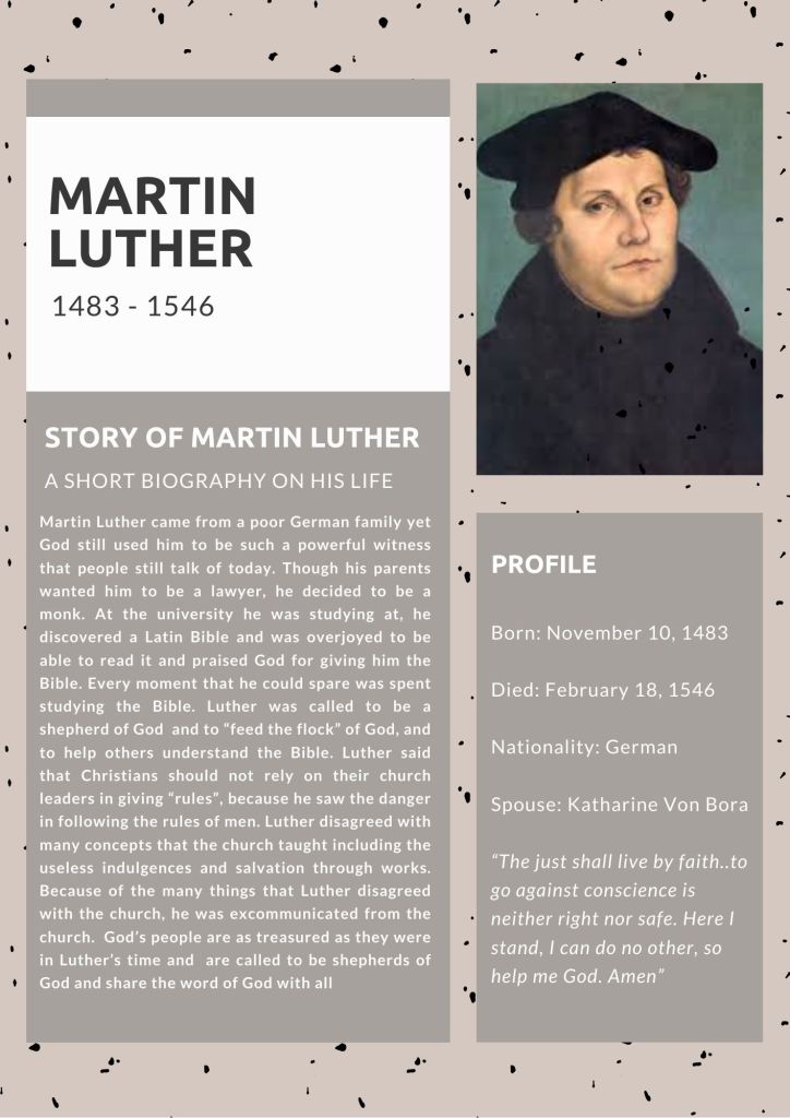 Brave, bold and courageous was how Isabelle described Martin Luther, the reformer who changed the history of Christianity. He stood up to the early Catholic church and translated the Latin bible to German. This allowed all commoners to access and read the word of God for themselves rather than relying on the priests or scholars to interpret the bible for them. Read on to hear from Isabelle how she perceives this man from the 15th century.